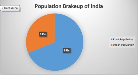 India is the second largest country by population in the world. Population of India according to 2013 data was 1.252 Billion. According to Census report, 68.84% population lives in rural part of India as compared to 31.16% of urban population.