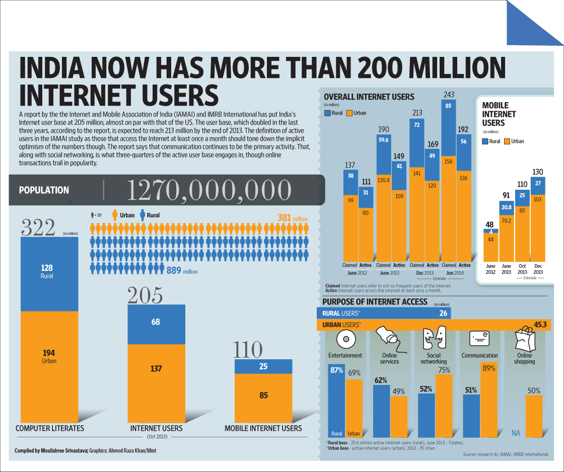 (Source: http://www.livemint.com/Consumer/9pWsphmYL2YjdisfO7bGLM/Internet-base-in-India-crosses-200-million-mark.html)